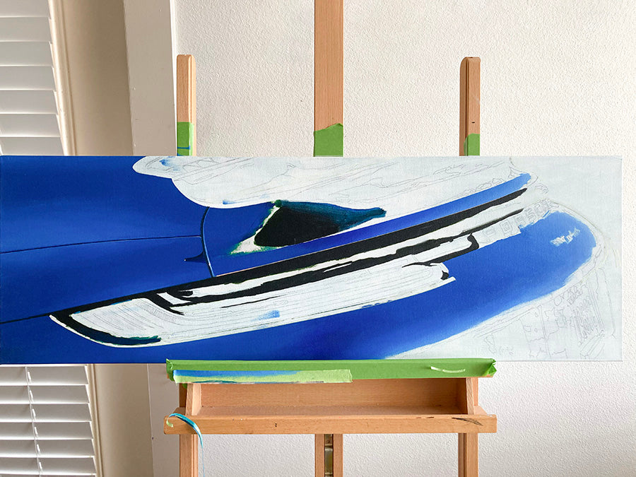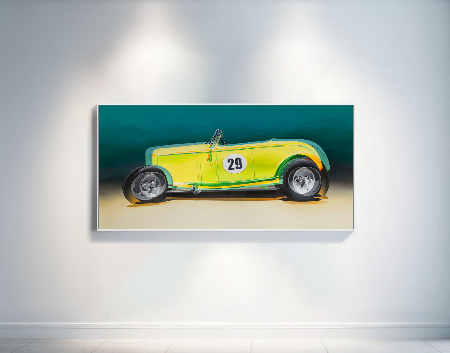 Original artwork is a meticulously detailed 24 x 48 inch acrylic painting on canvas. Celebrating automotive art and design in a fine art medium. Click link below to see print options: