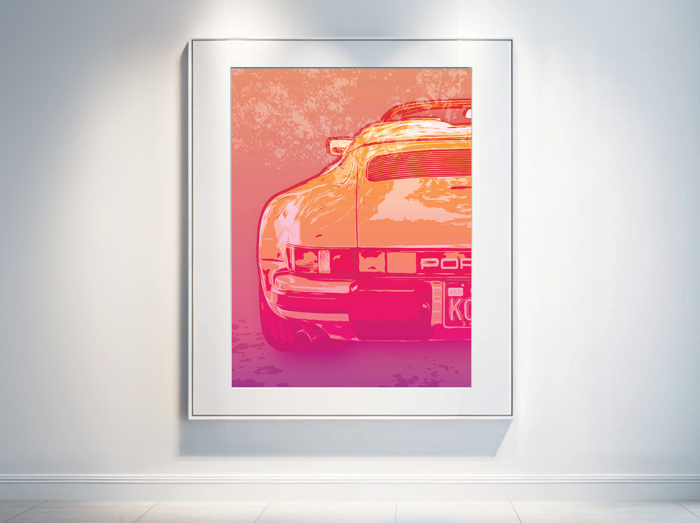 Creative artwork based on the 1989 Speedster. Made from 10 individual layers of paths/areas this version in orange on pink